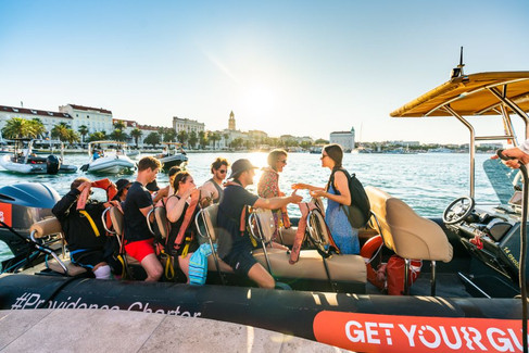 عند الإبحار إلى سبليت ، استمتع بمحطة سباحة أخرى قبالة جزيرة براك. بعد ذلك ، سيتم تقديم الفاكهة الطازجة والكعك المنزلي على متن المركب. استمتع بموسيقى الرقص وتناول مشروب أثناء غروب الشمس للحصول على نهاية مثالية لهذه الرحلة.
